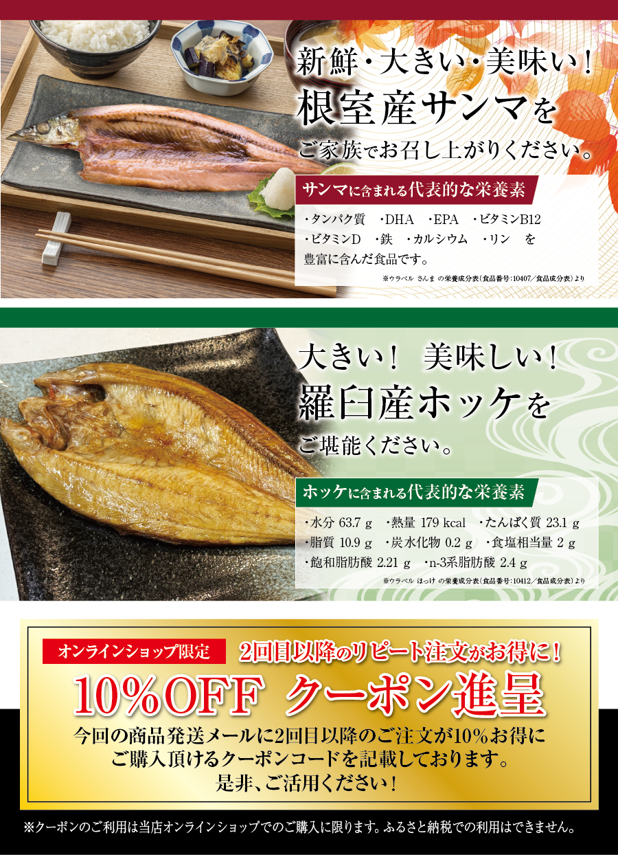 【根室産サンマ 3枚・羅臼産真ホッケ2枚 計5枚セット】灰干し・十二分 ツイートする シェアする 販売価格: 3,620円(税込み) 会員価格 (税込み) 通常価格 (税込み) 在庫 4 商品コード SANMA3-HOKKE2-5 JANコード 数量 1 2 3 4 カートに入れる